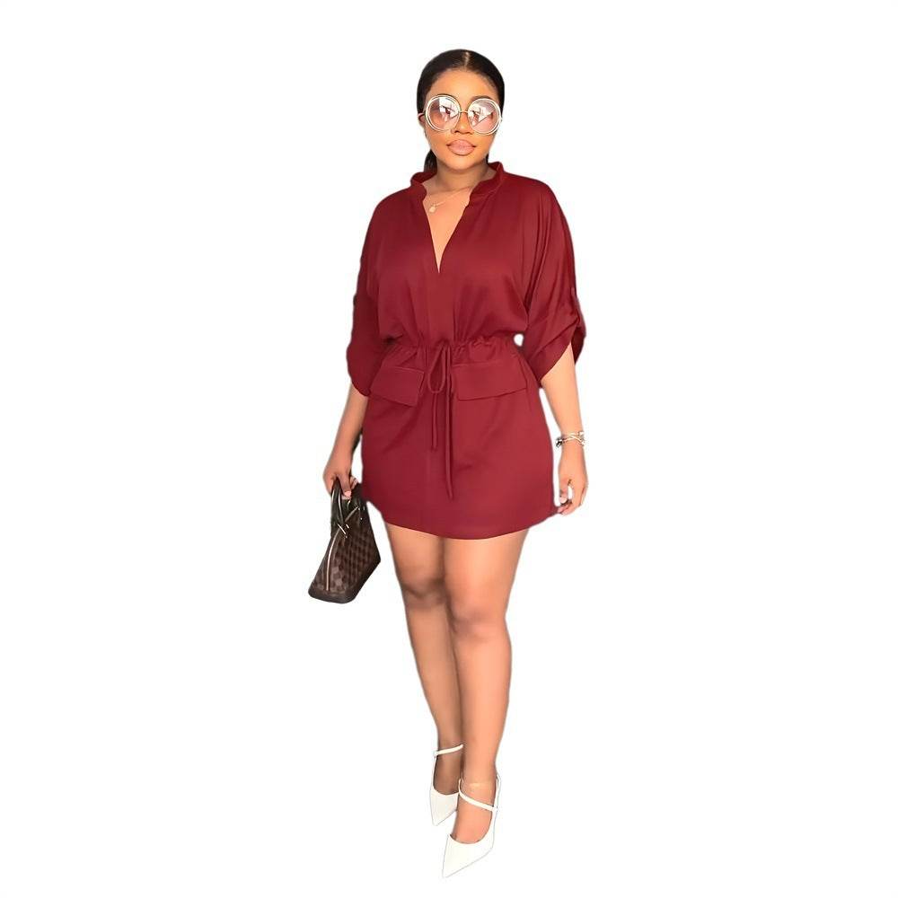 V-neck Loose Waist-tight Workwear Skirt