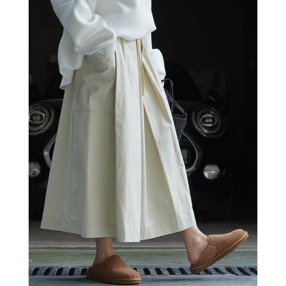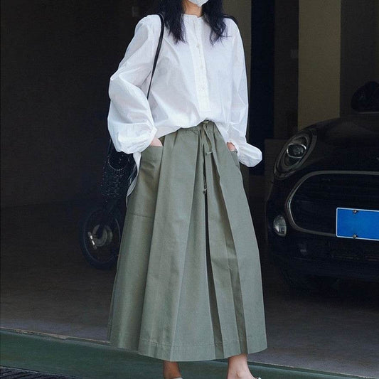 Workwear Casual High Waist Drawstring Elastic Pocket Ladies Skirt