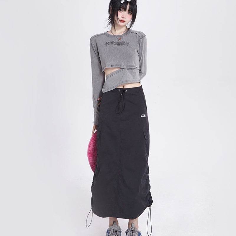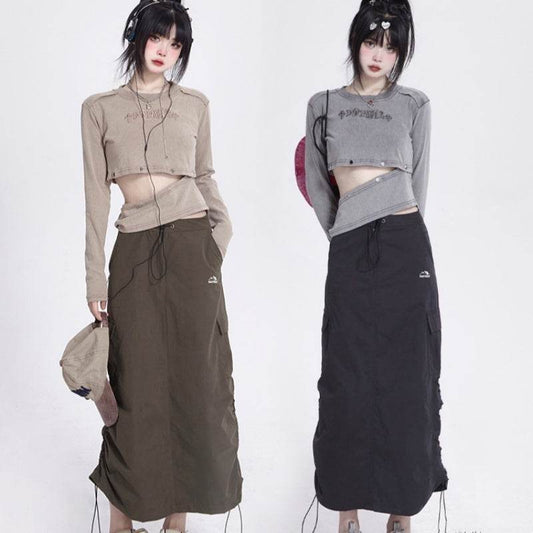 Workwear Mid-length Skirt Women's Autumn And Winter Drawstring