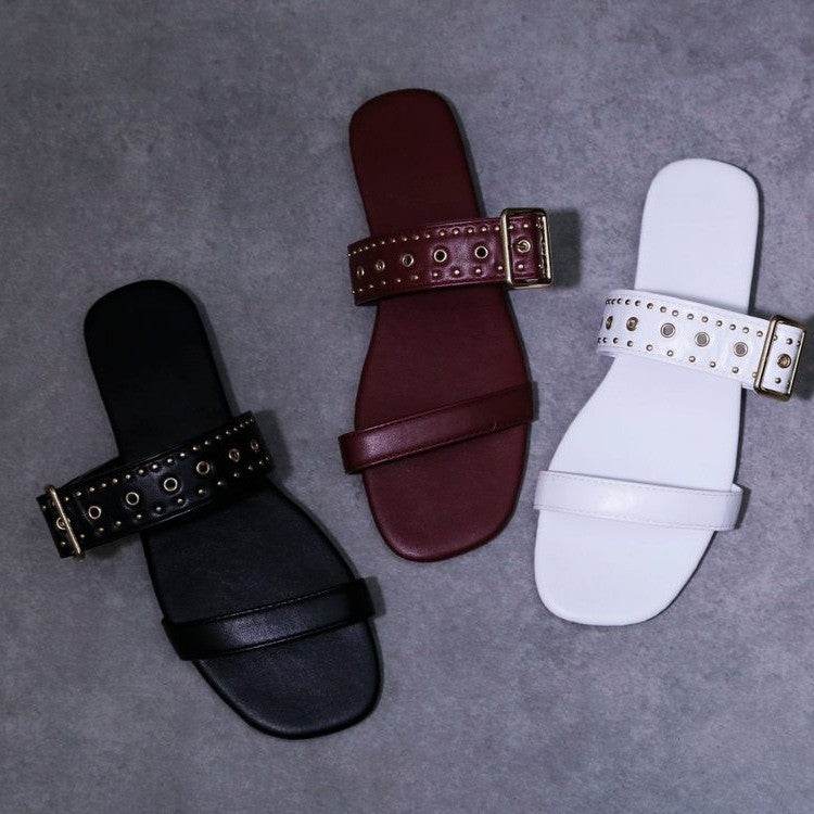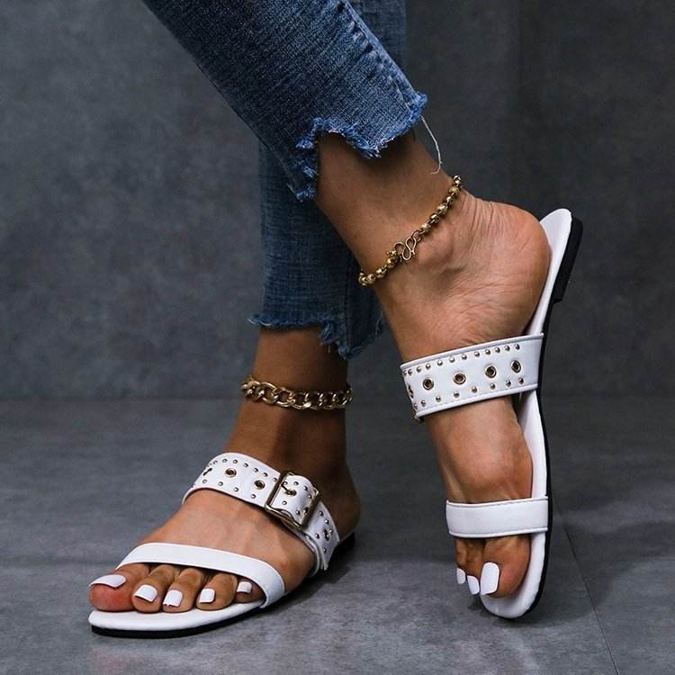 Summer Metal Decoration Slides Square Heel Non-slip Sandals Slippers