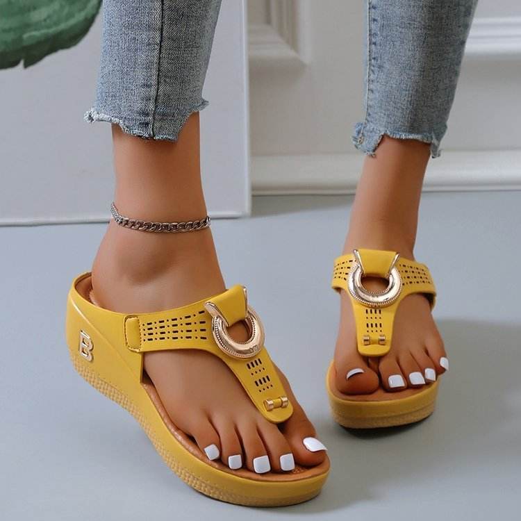 Thong Sandals Women High Heel Wedges Shoes Flip Flops Metal Decorative Slides Slippers
