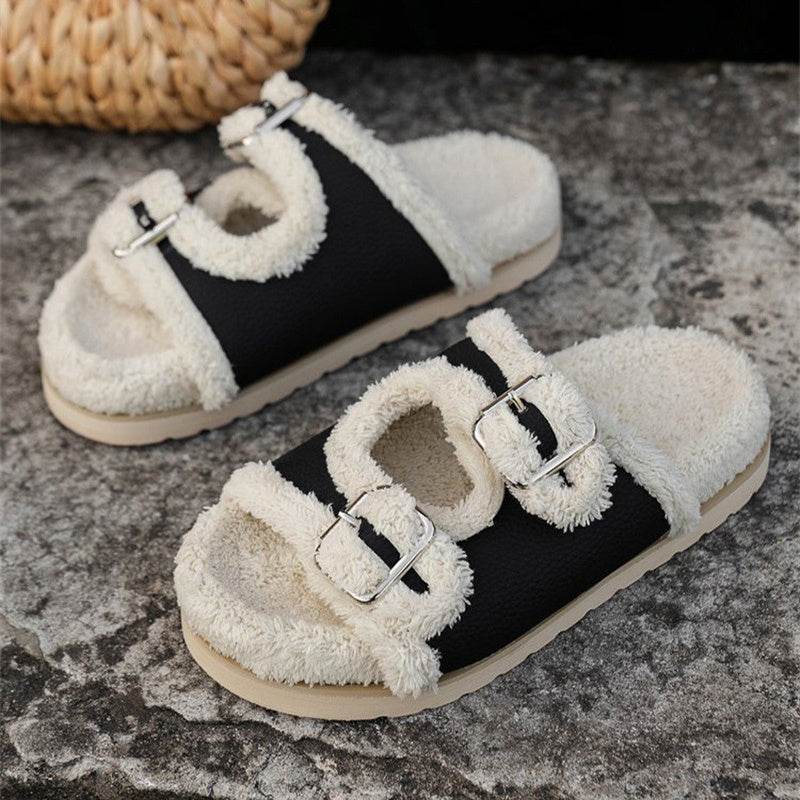 Autumn Winter Slipper Thick Sole Buckle Lamb Swool Slippers For Women Outdoor Gardern Indoor Lazy Plush Shoes