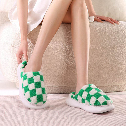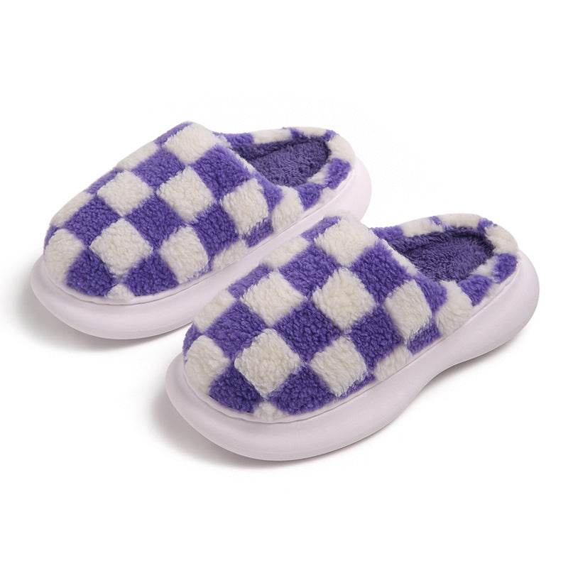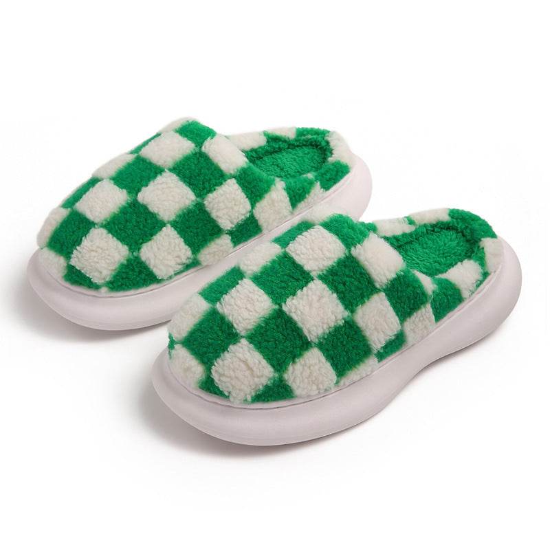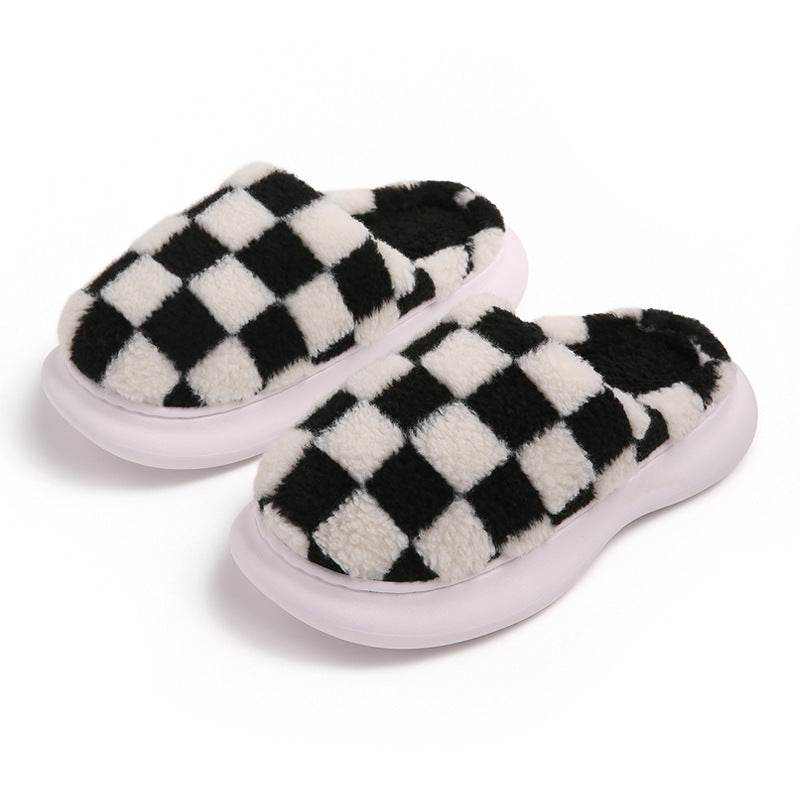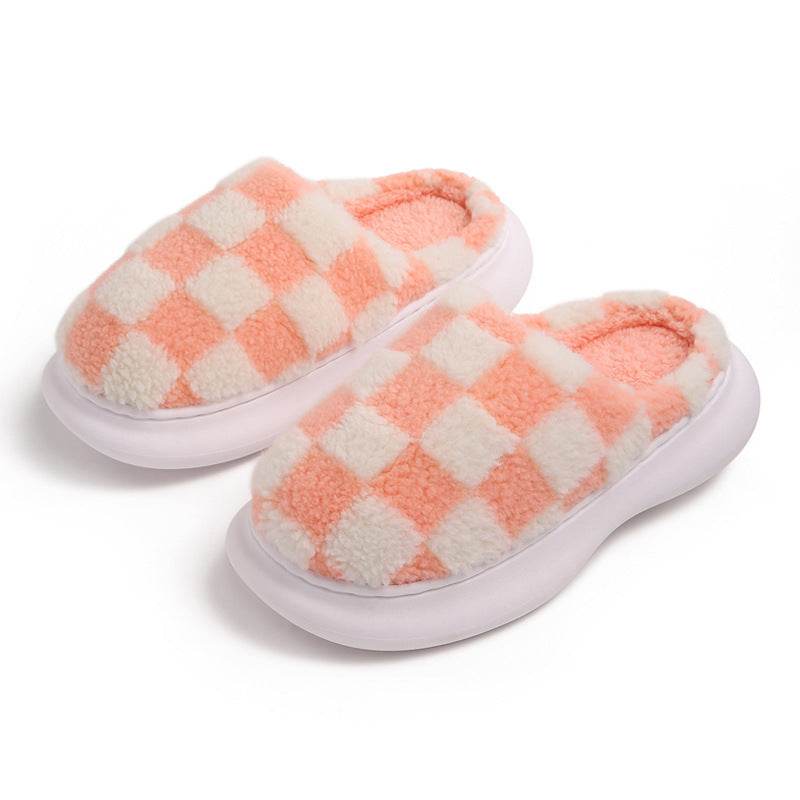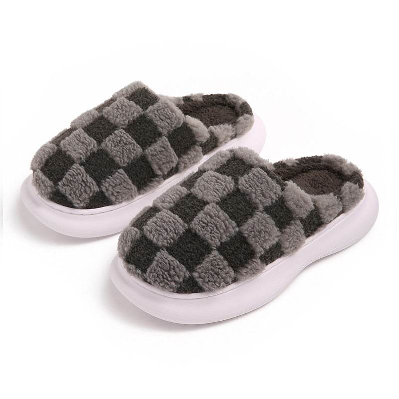 Checkerboard Plus Velvet Thick Cotton Slipper