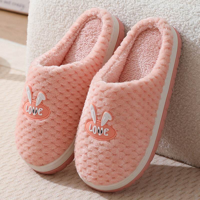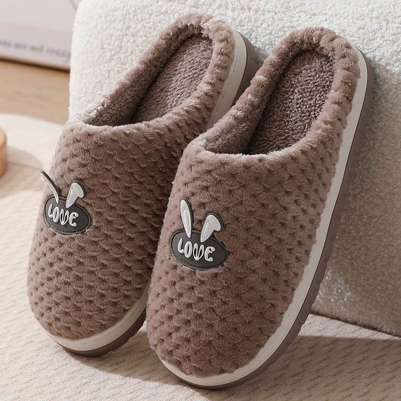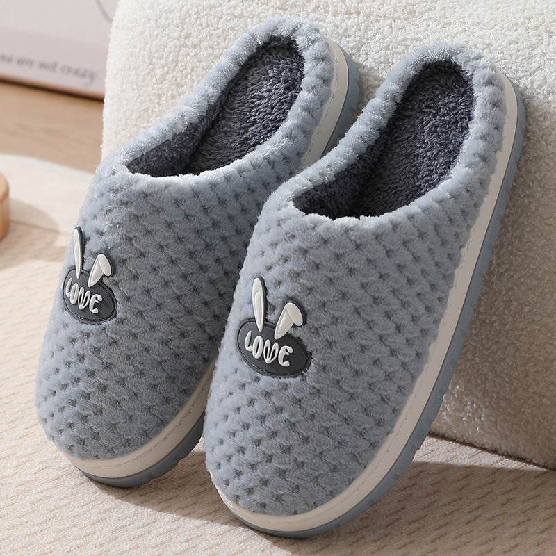 Cute Rabbit Plaid Design Home Slippers Winter Warm Thick-soled Cotton House Shoes For Women Indoor Non-slip Solid Couple Plush Slipper