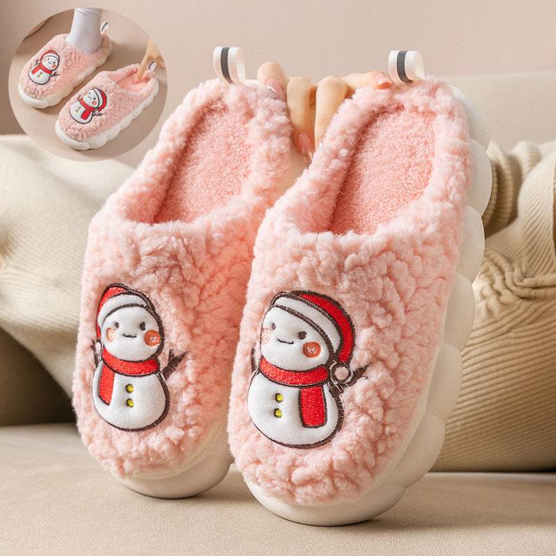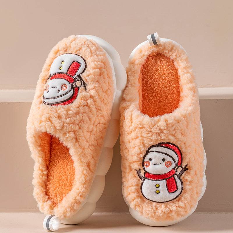 Cute Snowman Slippers Winter Indoor Household Warm Plush Thick-Soled Anti-slip Couple Home Slipper Soft Floor Bedroom House Shoes