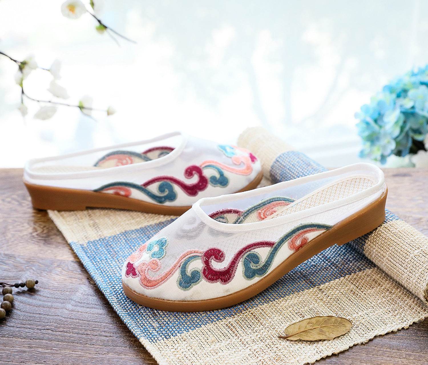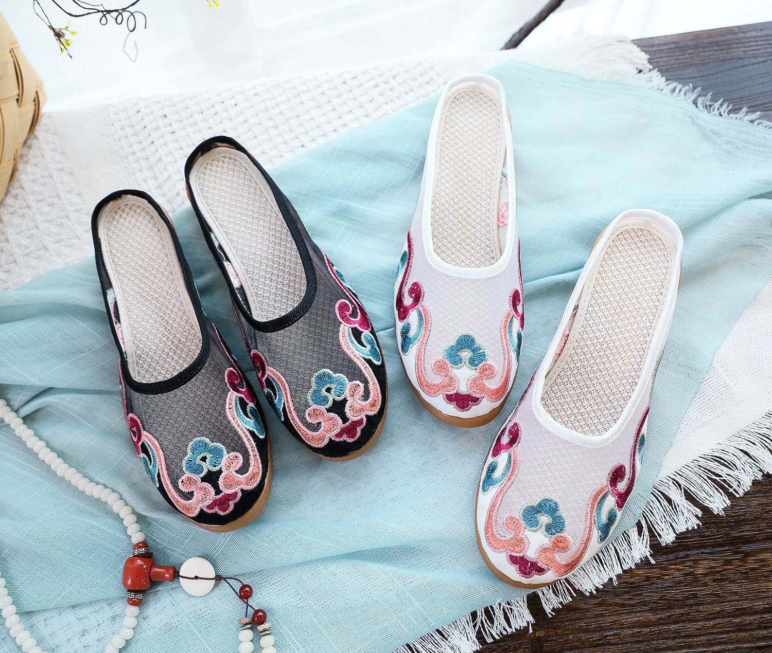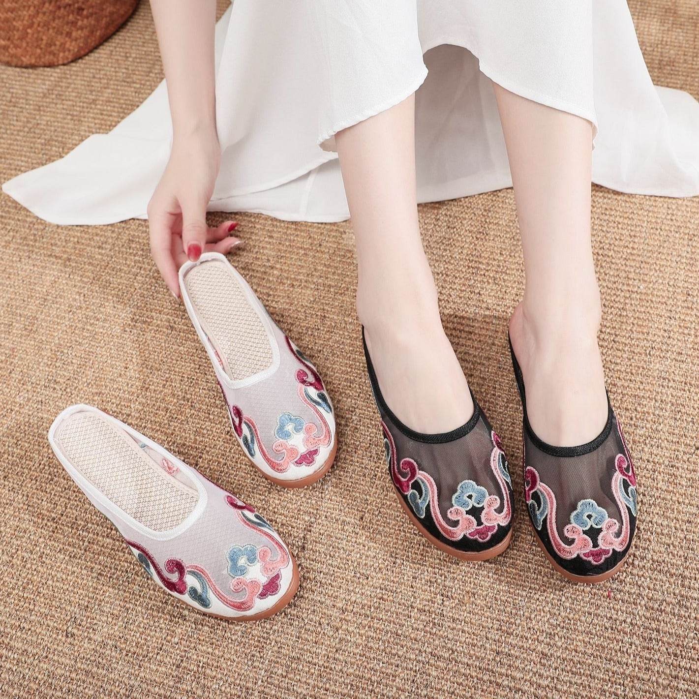 Slippers Mesh Embroidered Cotton Shoes Casual Women Outdoor Slippers