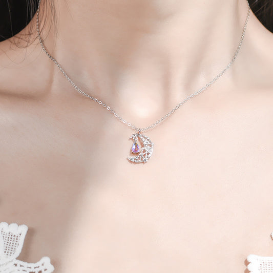 Sterling Silver Glazed Stone Moon Necklace Women