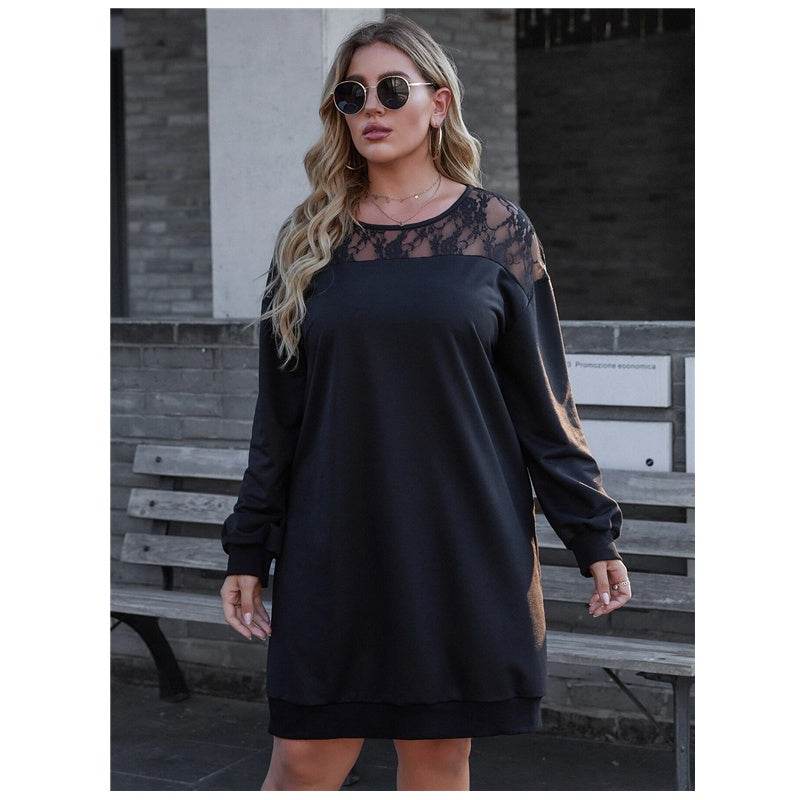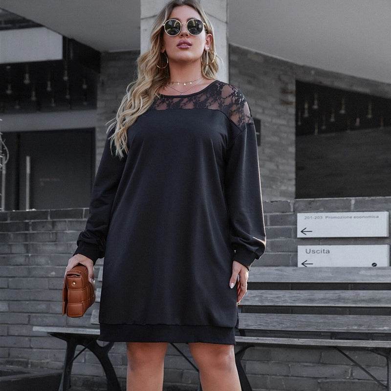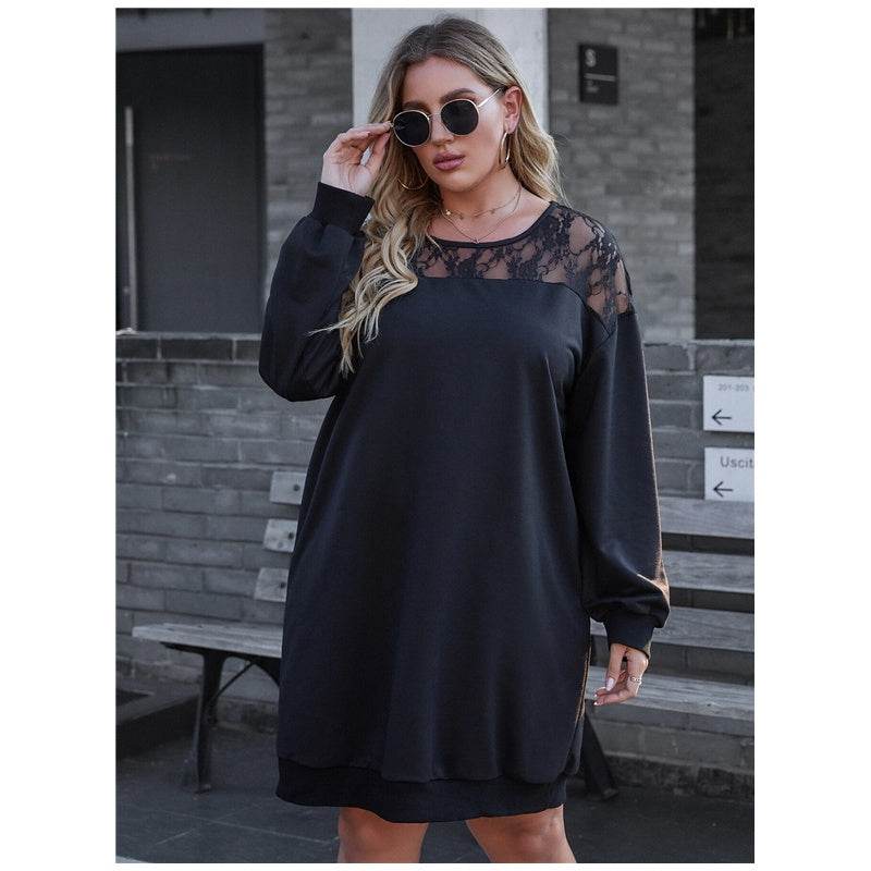 Fashion Plus Size Lace Stitching Ladies Casual Sweatshirt - Mubimart