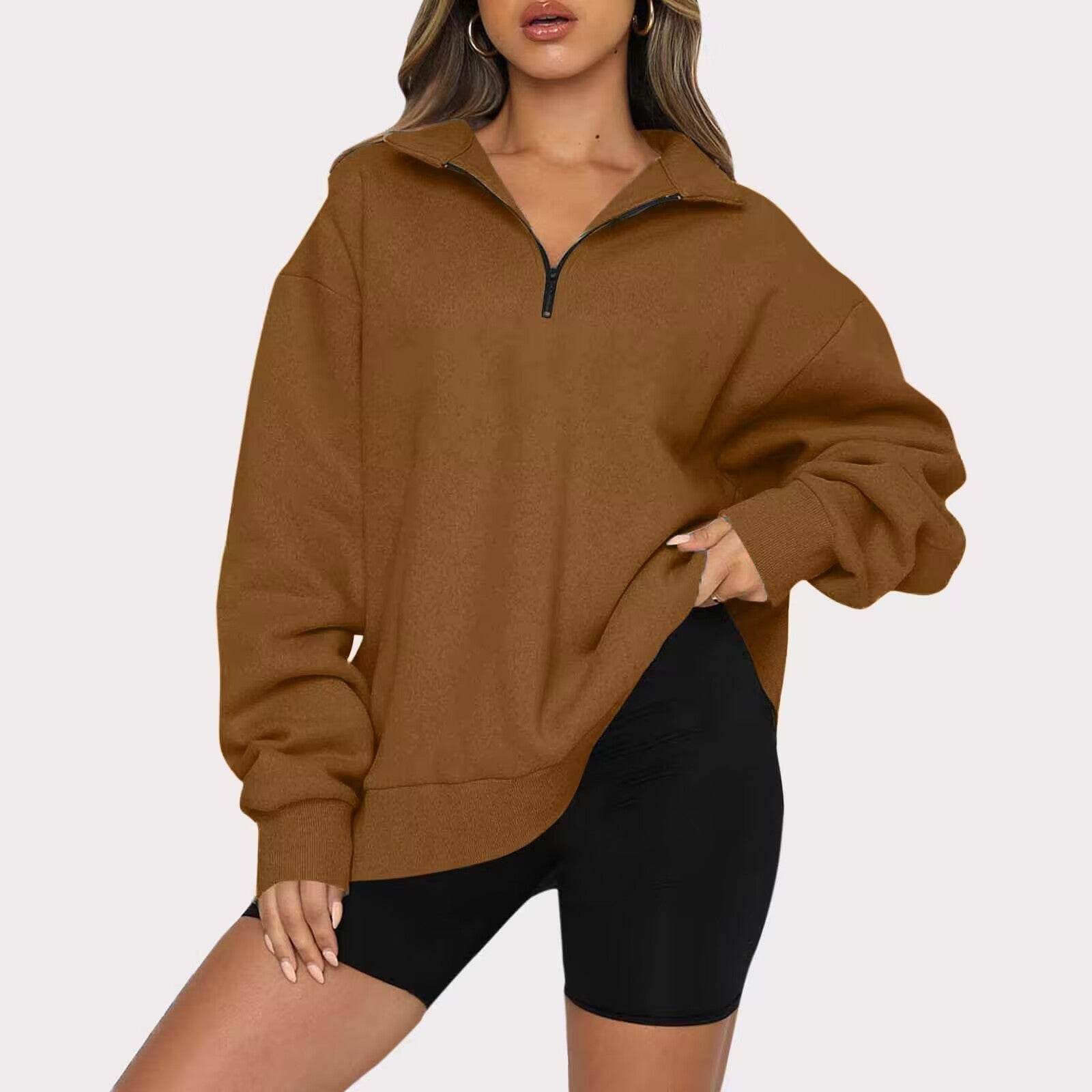 Women Sweatshirts Zip Turndown Collar Loose Casual Tops Clothes