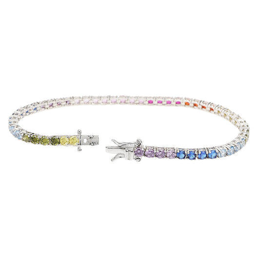 S925 Sterling Silver Stitching Color Zircon Round Diamond Tennis Bracelet Men And Women Couple