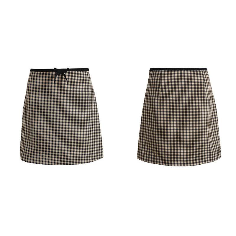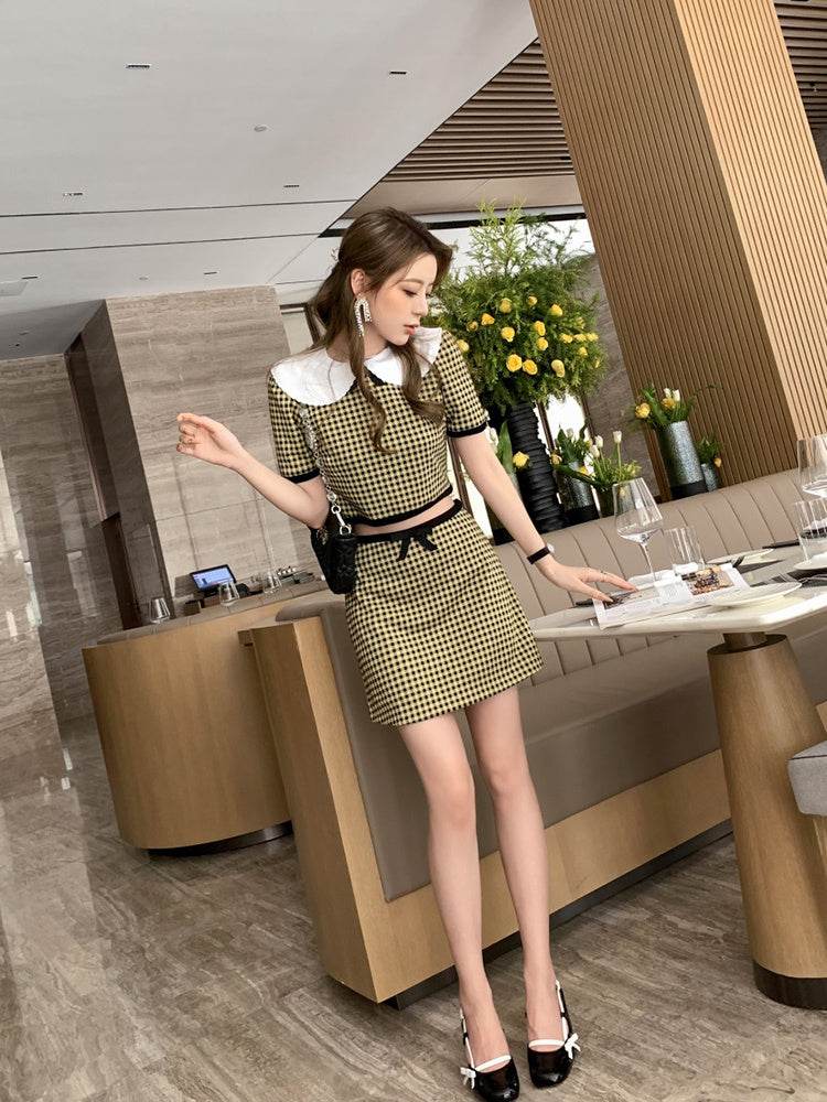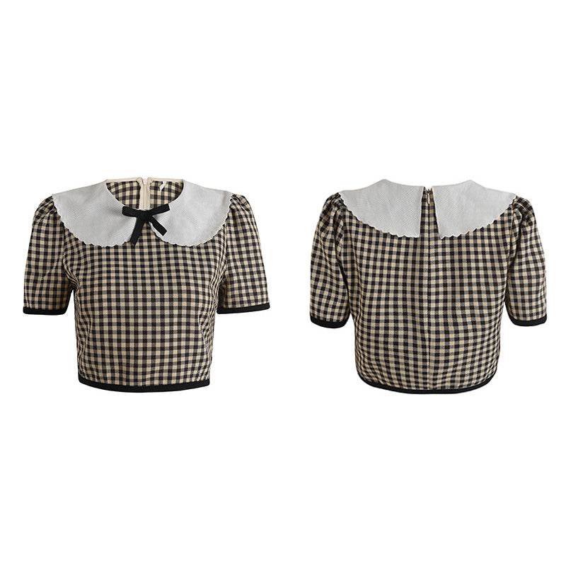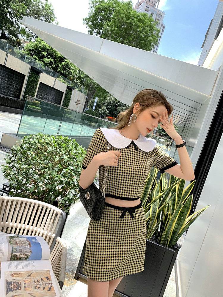 Doll Collar Plaid Crop Top Women High Waist Skirt