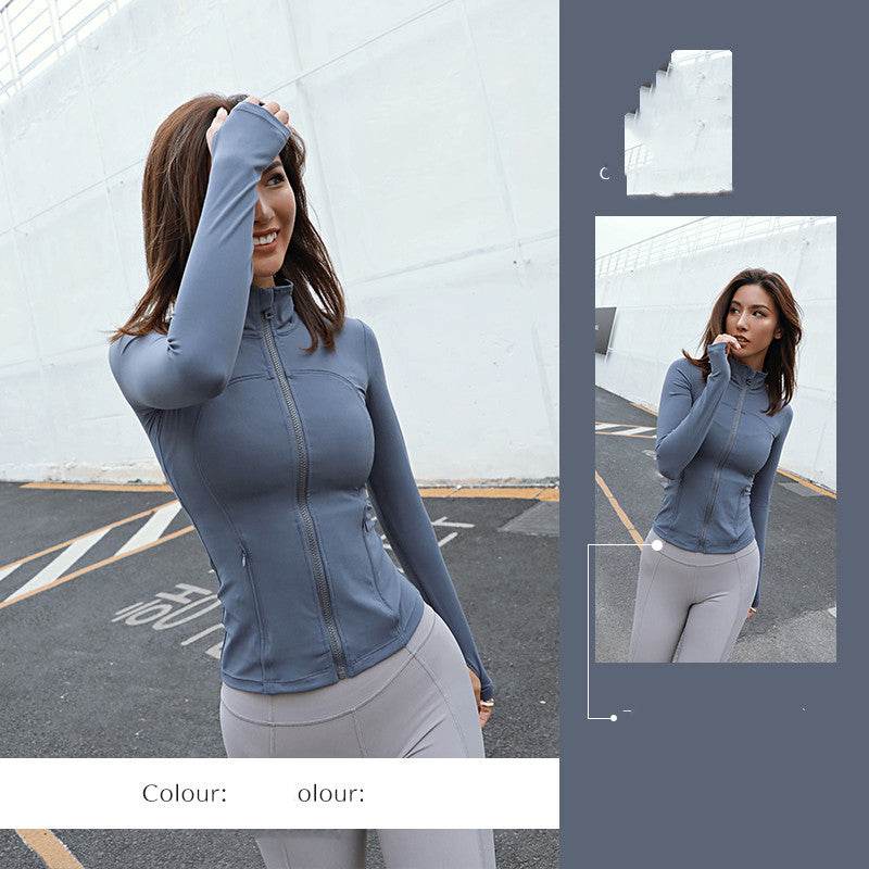 Long-Sleeved Zipper Sports Top Women's Stretch Tights Workout Clothes