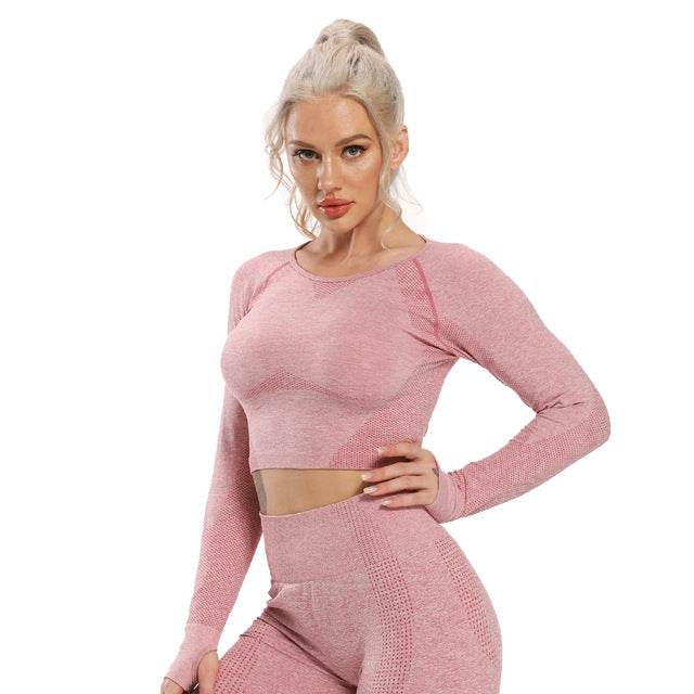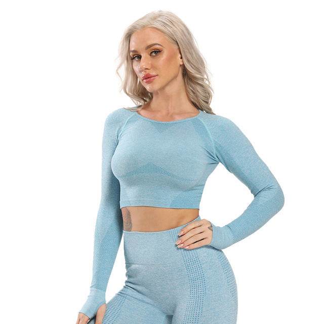 Seamless Yoga Top Fitness Long Sleeve Women Gym Crop Top