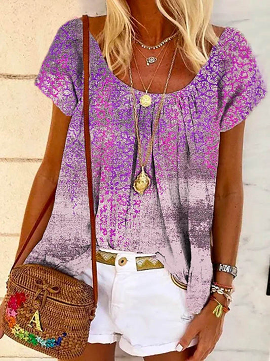 Fixsys Women T Shirt Print Tee Shirt O-Neck Tops Tees Summe - Mubimart