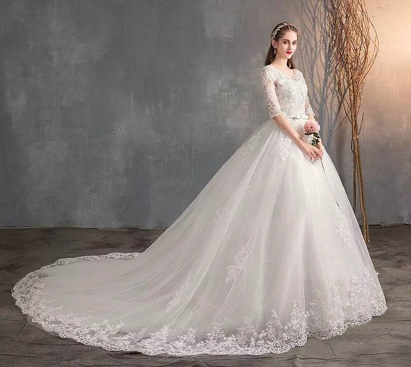 Halbarm Brautkleider Lange Schleppe Brautkleid