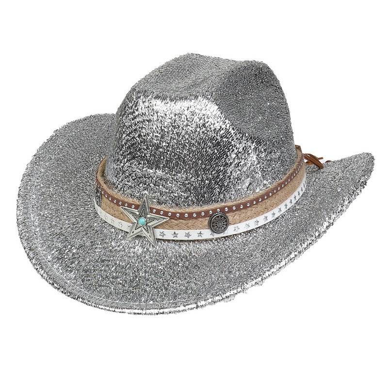 Festival Party Versammlung Silber Western Denim Fedora Hut Filz