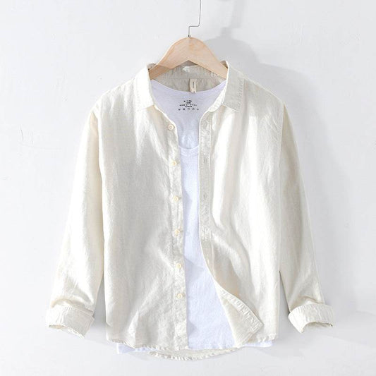 Lässiges Langarmhemd mit Taschenspitze, Polokragen, einfarbiger Knopf, Herrenbekleidung