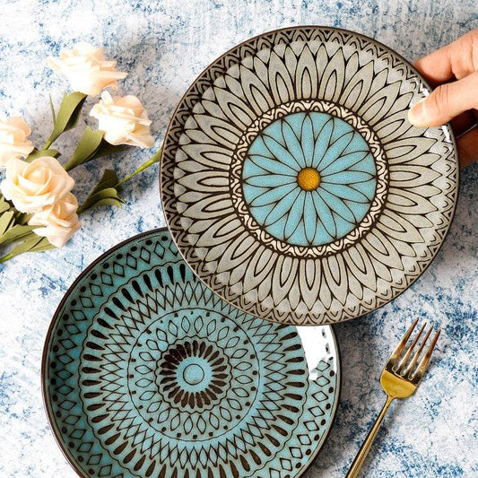 Keramikteller, flacher Teller, kreativer Teller, japanisches Vintage-Geschirr