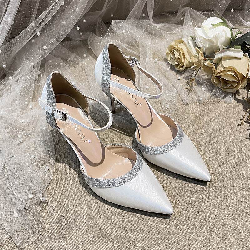 Satin Hohl Weiß Brautkleid Zwei Stück Stilettos