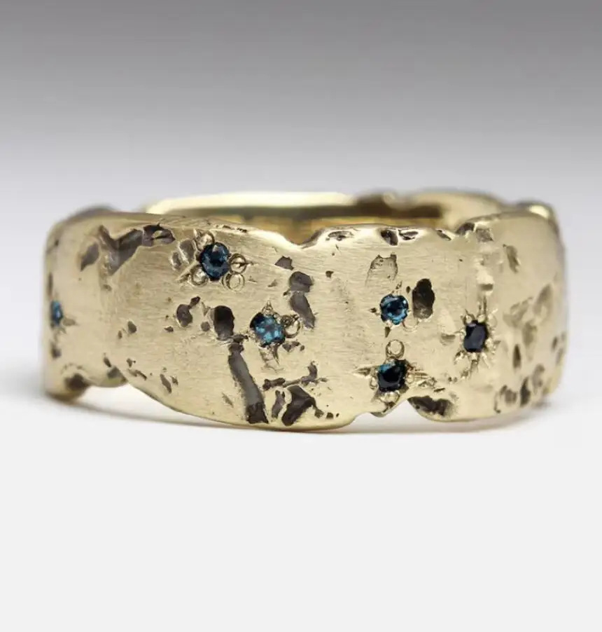 Tin Foil Textured Ring Fashion Inlaid Blue
