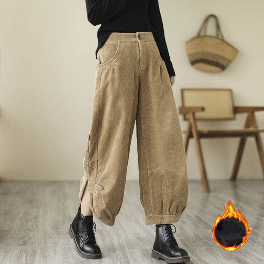 Übergroße, lockere und dicke Caprihose aus Cordplüsch mit hoher Taille