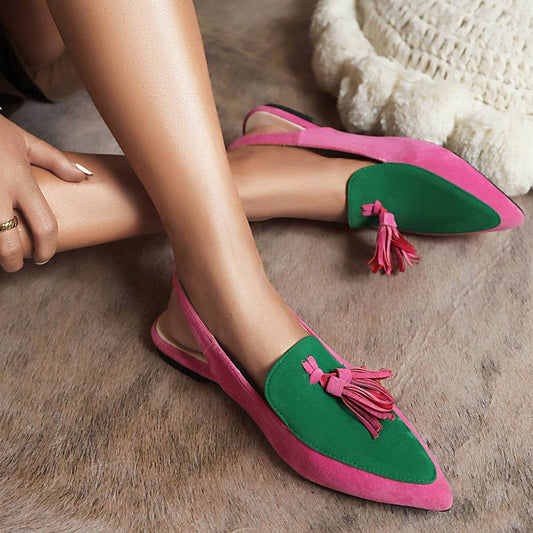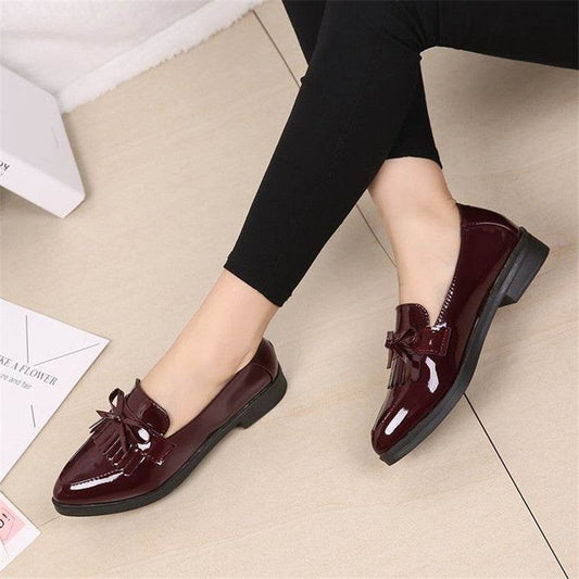 Flache Einzelschuhe im britischen Stil mit Quaste und Schleife und spitzem Zeh