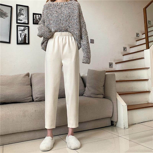 Damen Herbst Elastische Taille Feste Taschen Haremshose Baumwolle Leinen Lose Lange Capris Pantalon Hose Plus Size