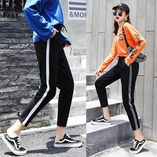 Damen Herbst Elastische Taille Feste Taschen Haremshose Baumwolle Leinen Lose Lange Capris Pantalon Hose Plus Size