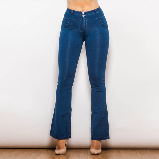 Shascullfites Melody Dunkelblaue Flared Lift Jeggings Button Up Jeans Bum Lift Jeans High Waist Flare Jeans Damen