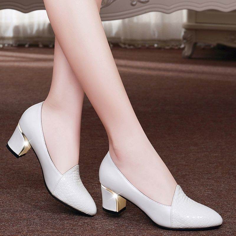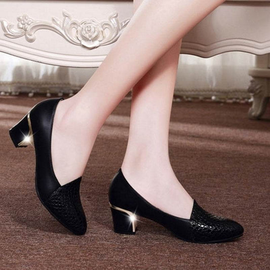 Spitze Einzelschuhe Damen Mittelabsatz Dicke Absatzschuhe Große Größe Arbeitsschuhe