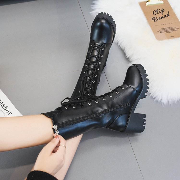 Dicker Boden, verstärkt durch Schnürstiefeletten, All-Match-Motorradstiefel mit Mittelrohr