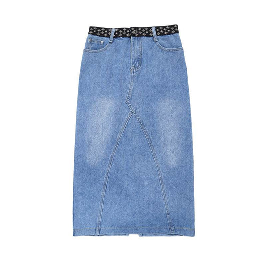 Plus Fat Plus Size One-Step Split Jeansrock Mittellanger Damenrock Hohe Taille Bag Hip Langer Rock