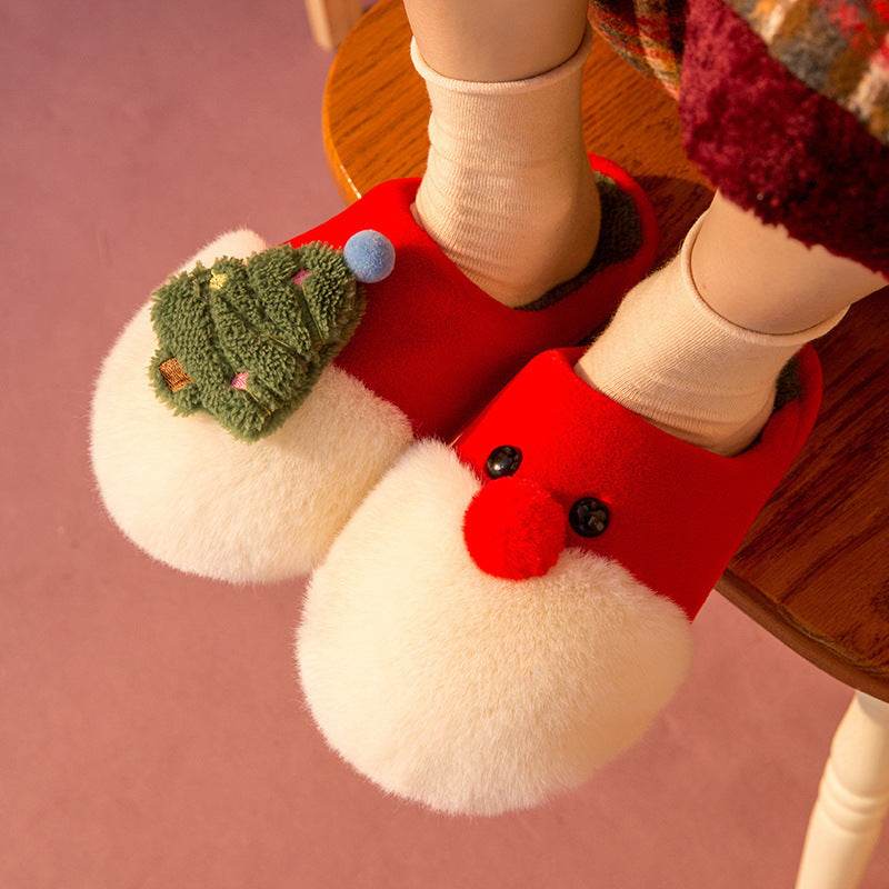 Winter Plush Slippers Christmas Cute Santa Claus And Christmas Tree Slipper Warm Anti-Slip House Shoes For Women - Mubimart