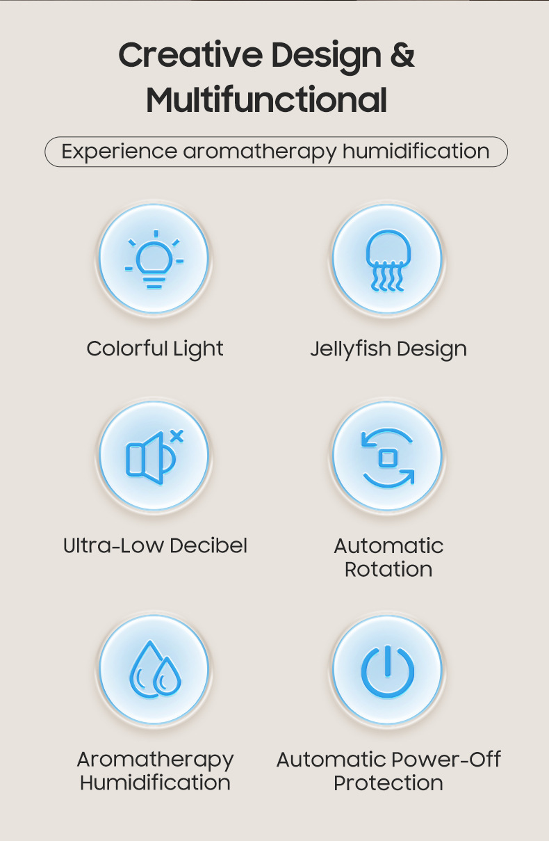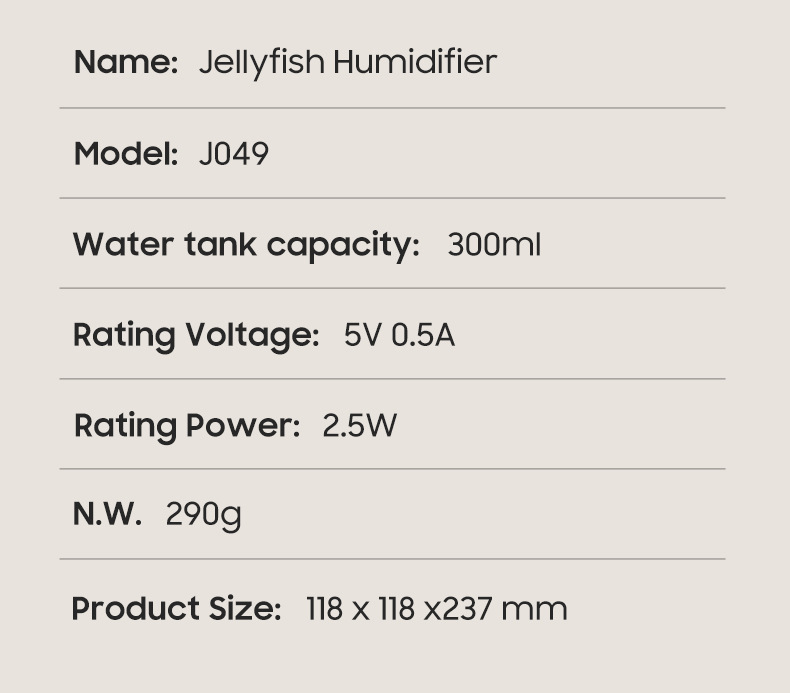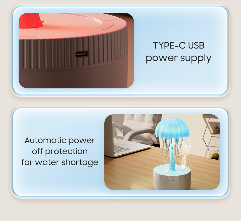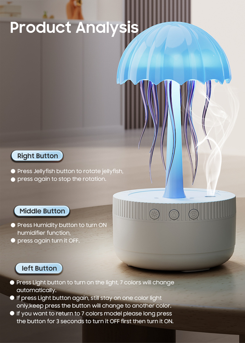 USB Rotating Colorful Light Large Mist Jellyfish Humidifier