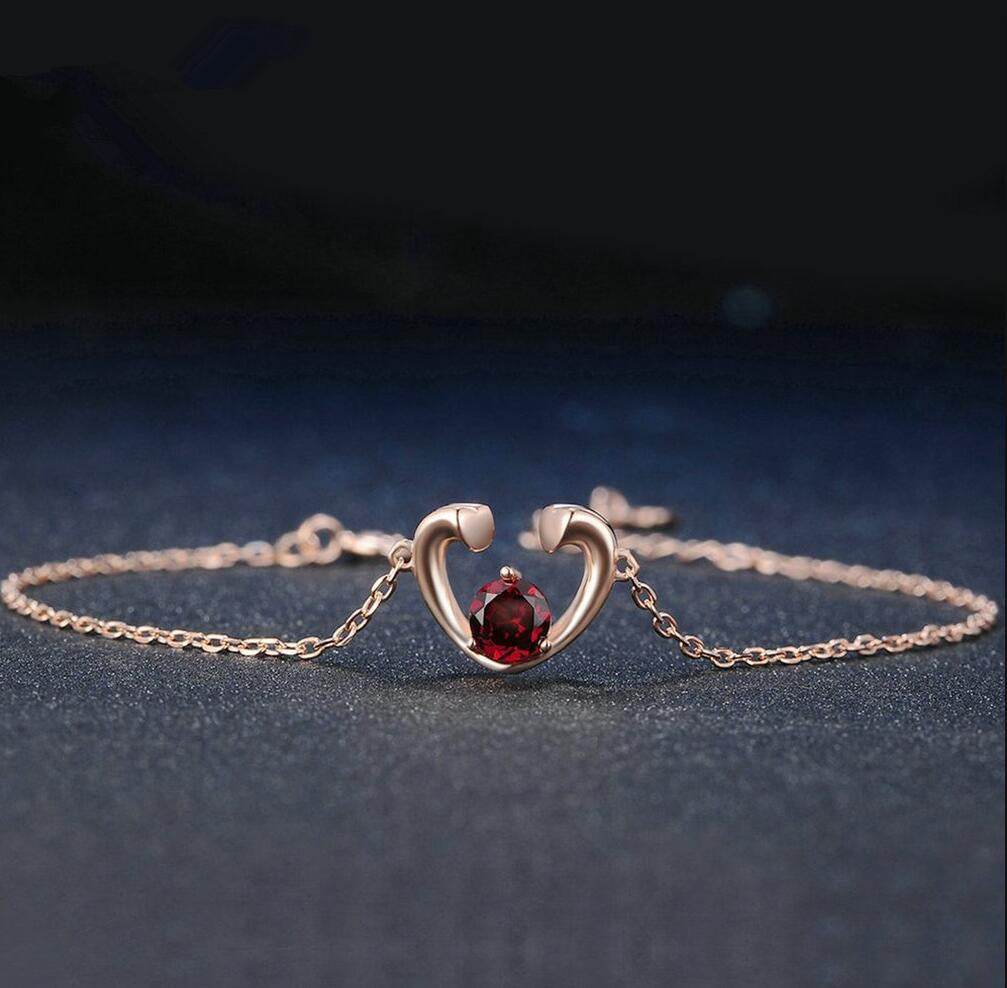 Natural Garnet Round Delicate Gemstone Bracelet - Mubimart
