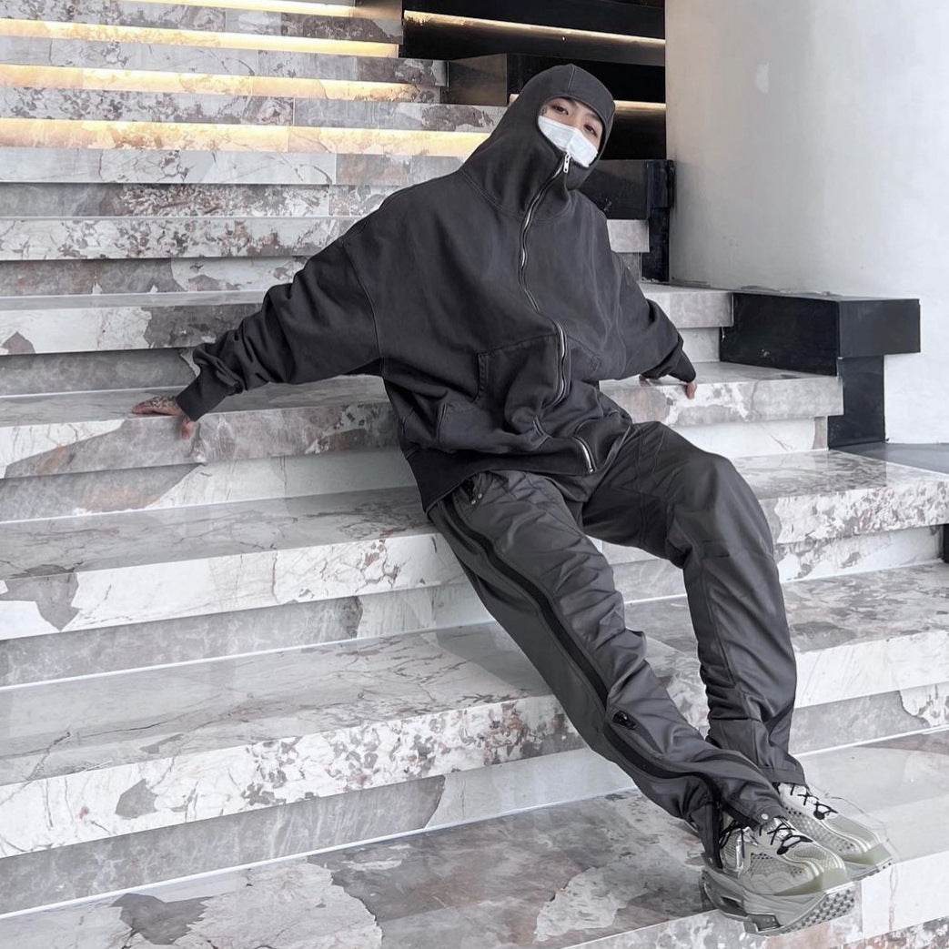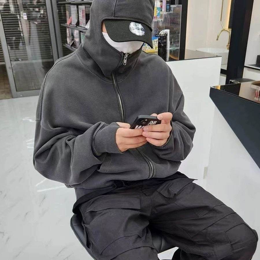 Loose Casual Hoodie Sweater Mask Zipper Distressed Cardigan