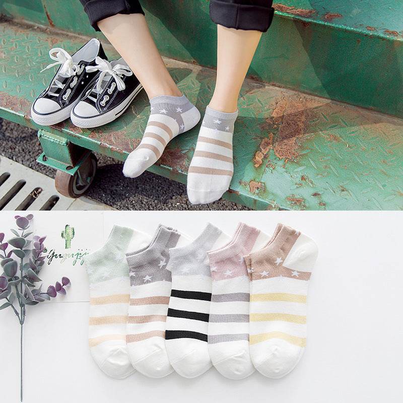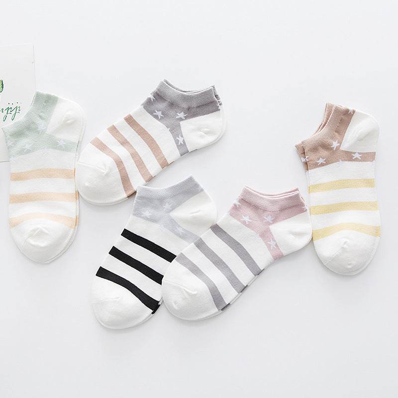 Star Stripe Breathable Low-cut Invisible Cotton Socks