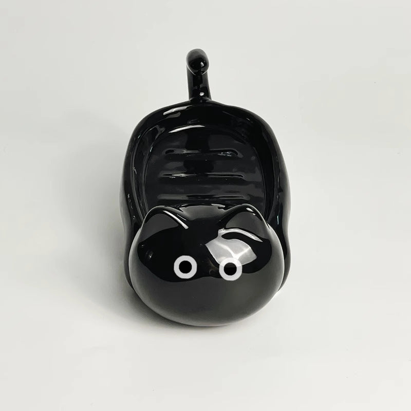 Color Blink White Cat Soap Dish, Round Eye Black Cat Soap Dish, Black White Cat Soap Dish