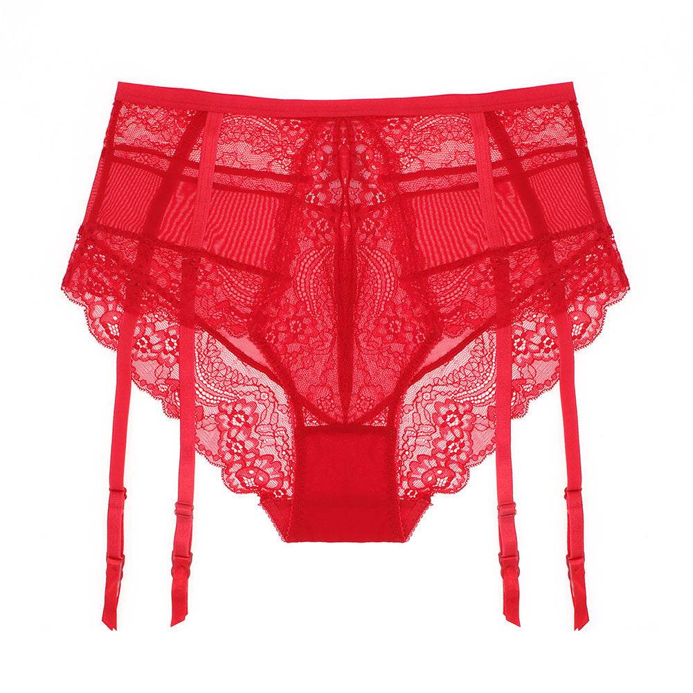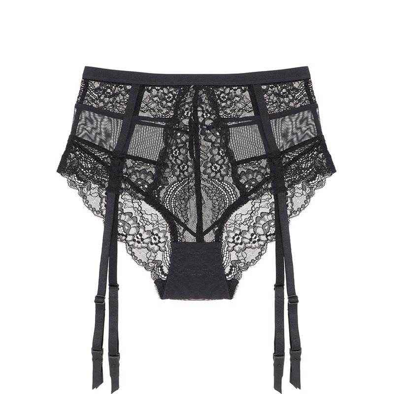 High Waist Panties Sheer Lace Suspenders - Mubimart