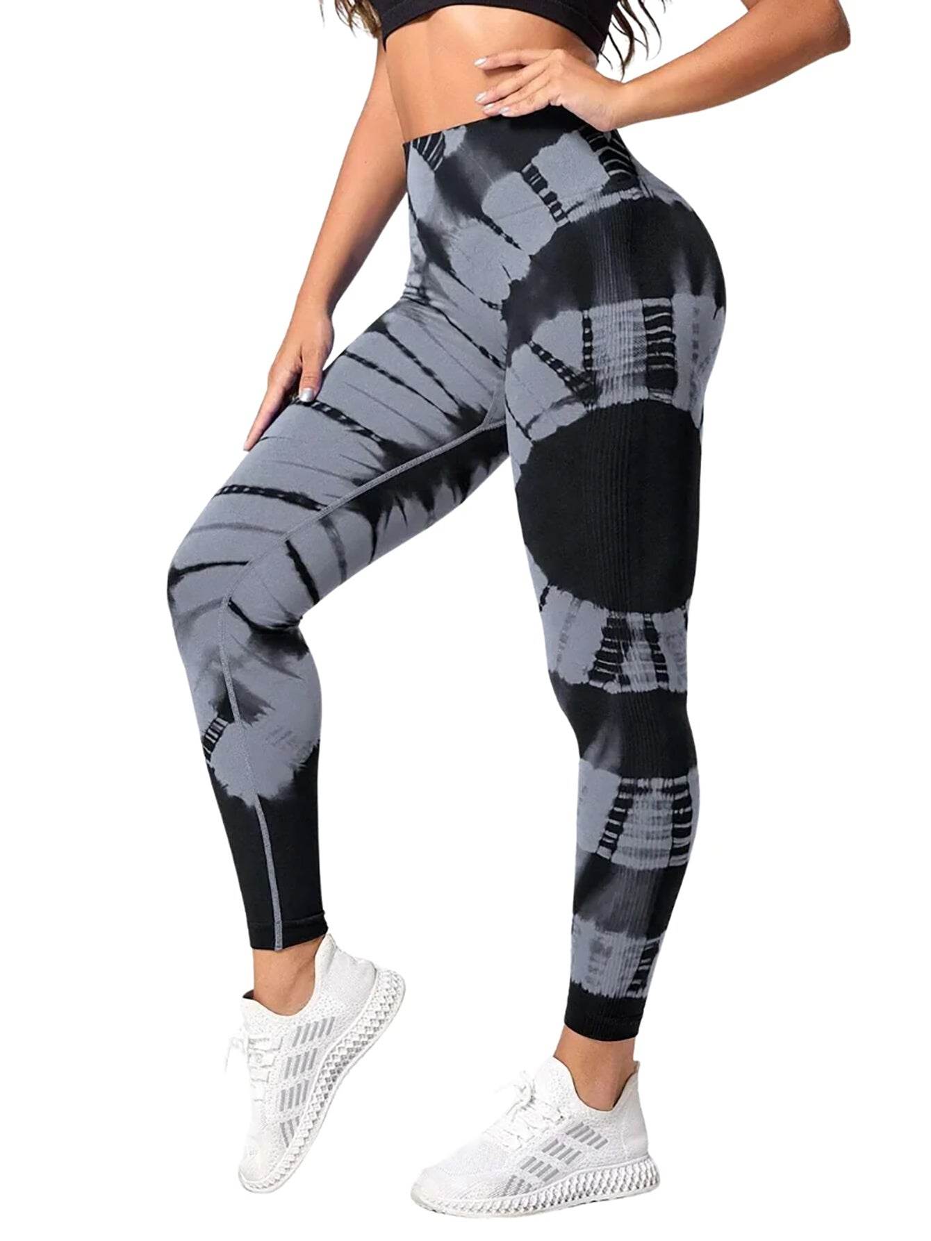 Tie-dye High Waist Tummy Control Butt Lifting Moisture Wicking Quick Drying Seamless Tie Dye Yoga Pants, Running Sports Tight Pants, Women's Activewear - Mubimart