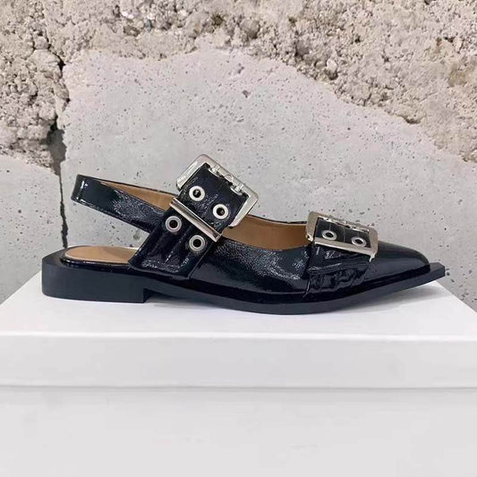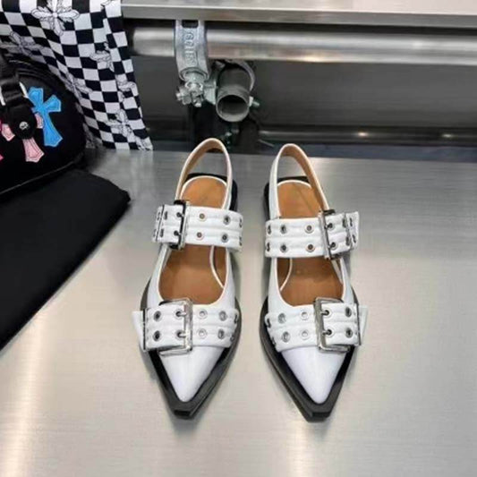 Gold Silk Color Matching Pointed Toe Shallow Mouth Square Toe Flat Shoes