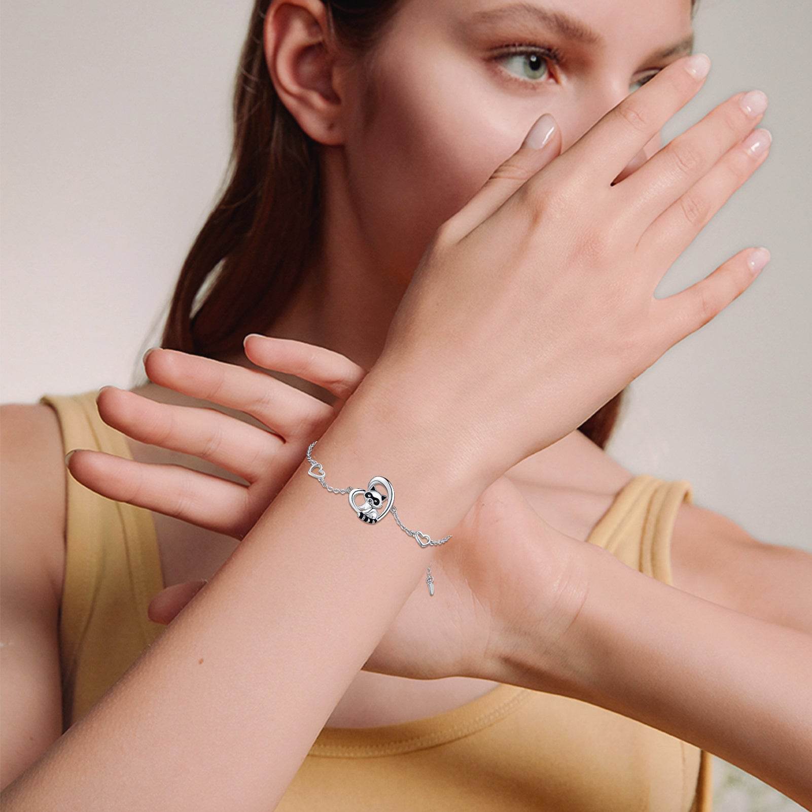 925 Sterling Silver Heart Charm Raccoon Bracelet Animal Jewelry Gifts For Women Girls Teen