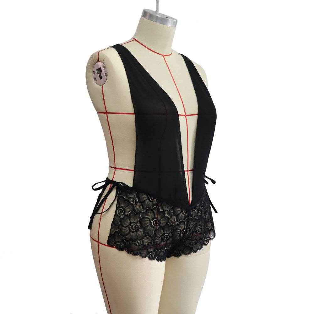 Large Size Sexy Lingerie Women Lace See-Through Sexy One-Piece Tights Nightdress