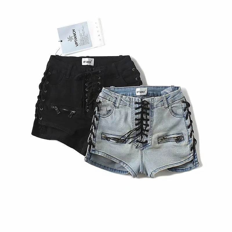 Heavy Industry Lace-Up Denim Shorts Women European And American Trend Women's Pants