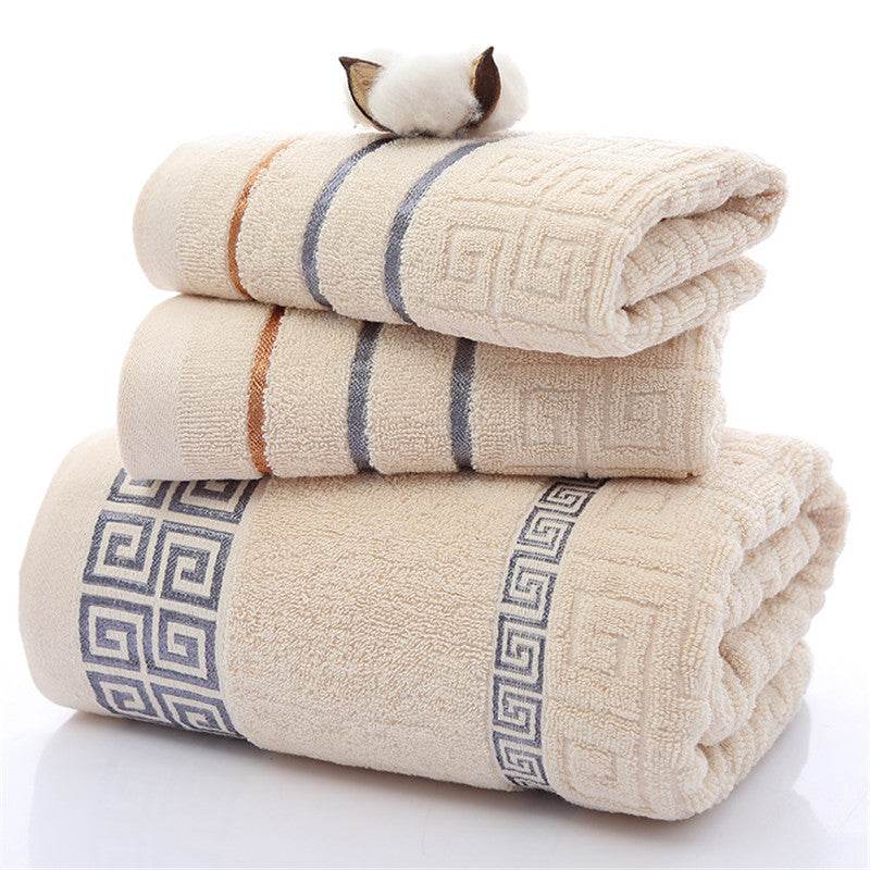 Three sets of Great Wall grid bath towels - Mubimart
