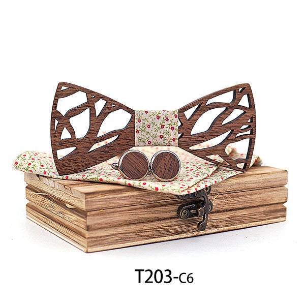 Handmade men's plaid bow tie plain wooden personality bow tie