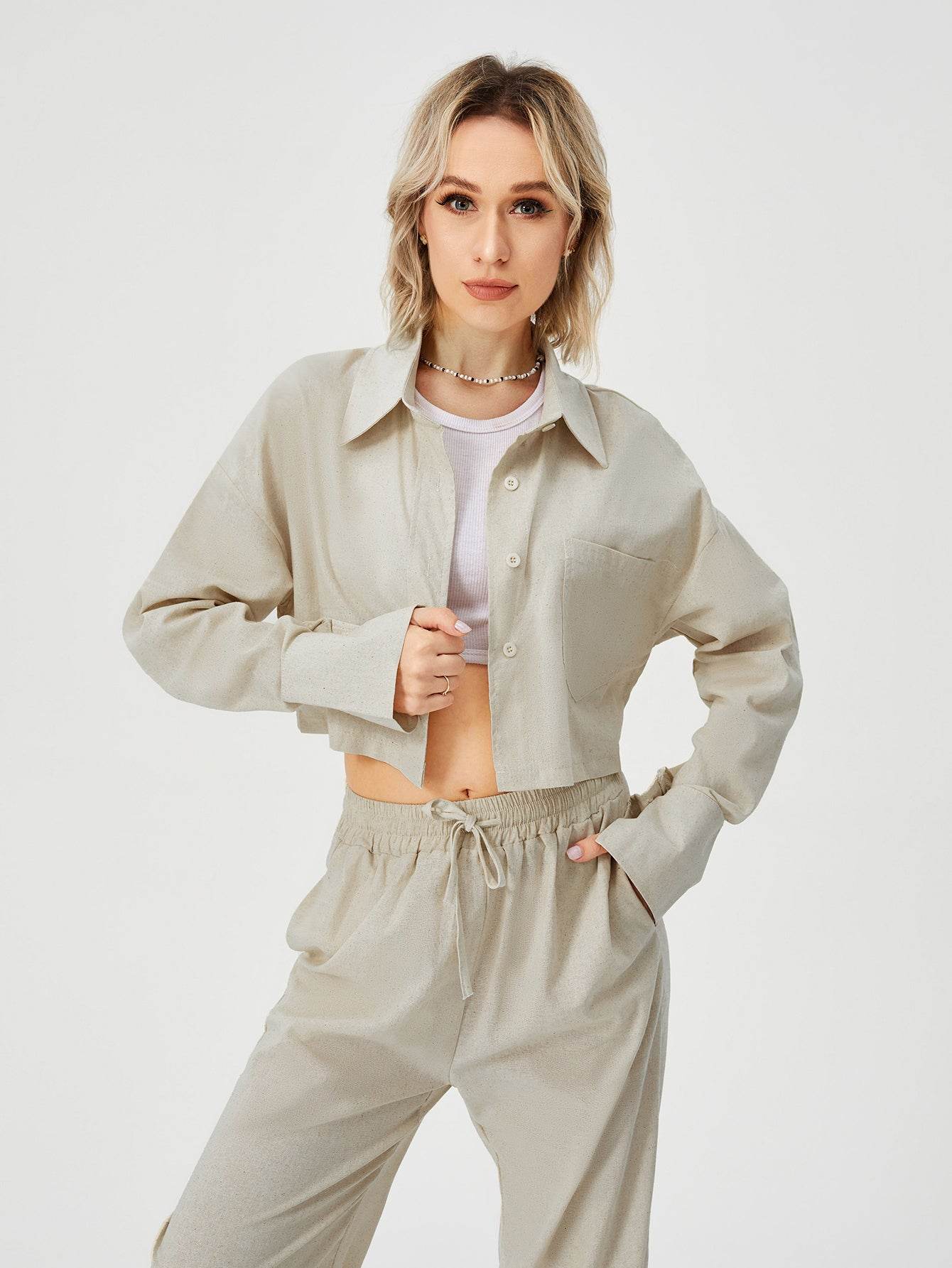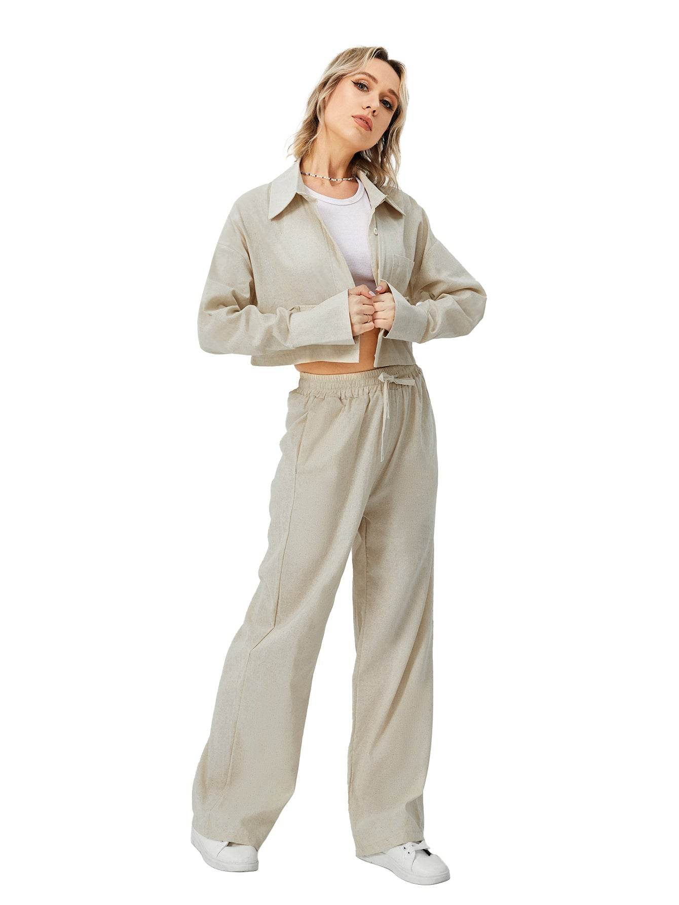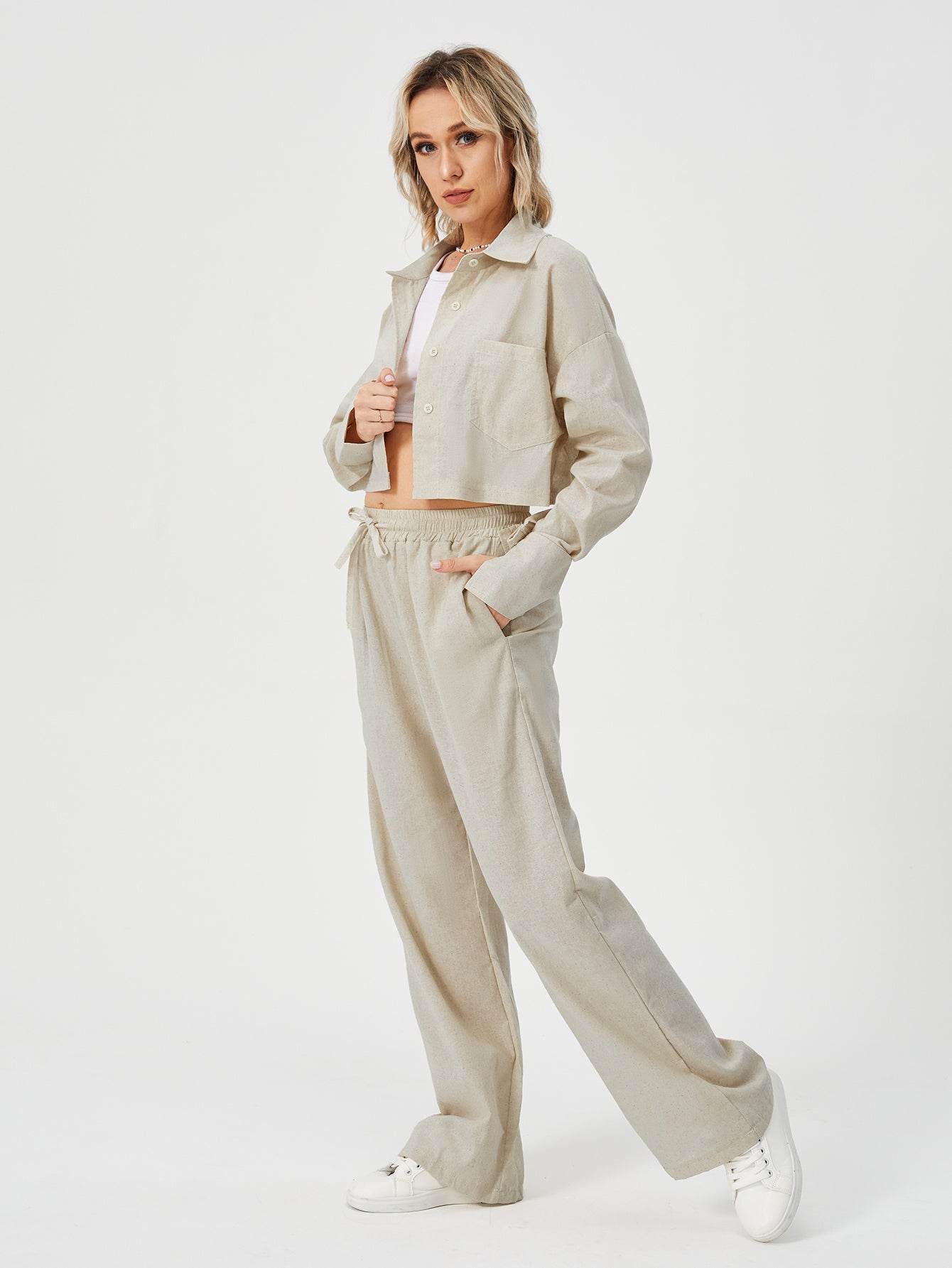 Women Two Piece Outfits For Women Long Sleeve Button Down Wide Leg Loungewear Pajama Set