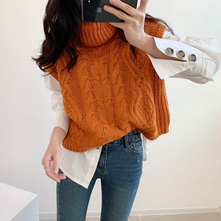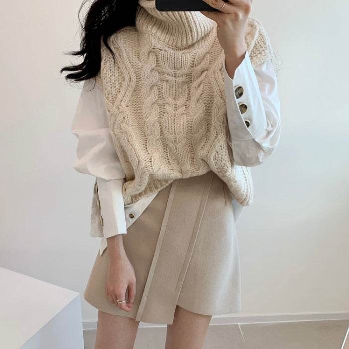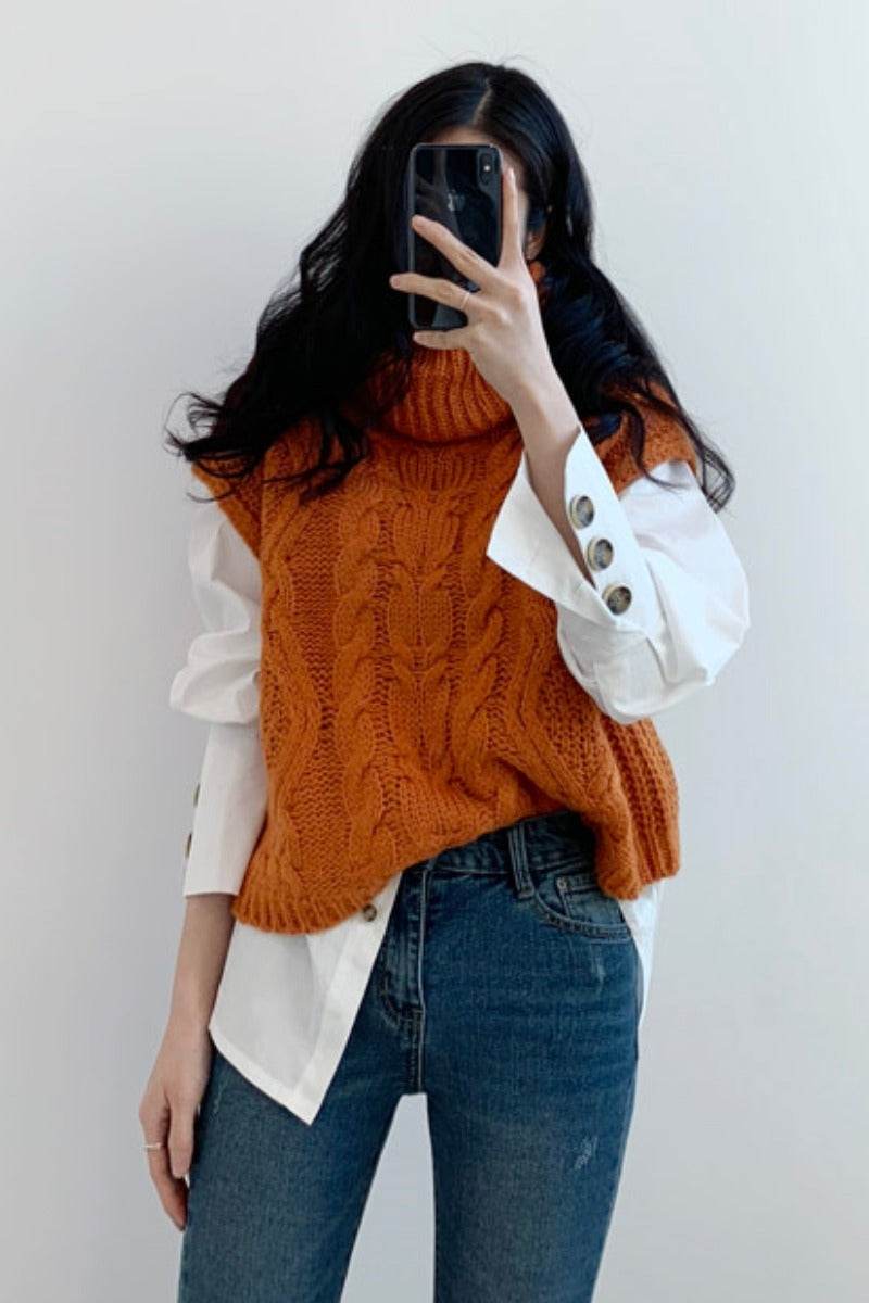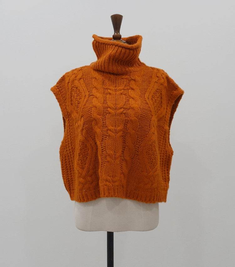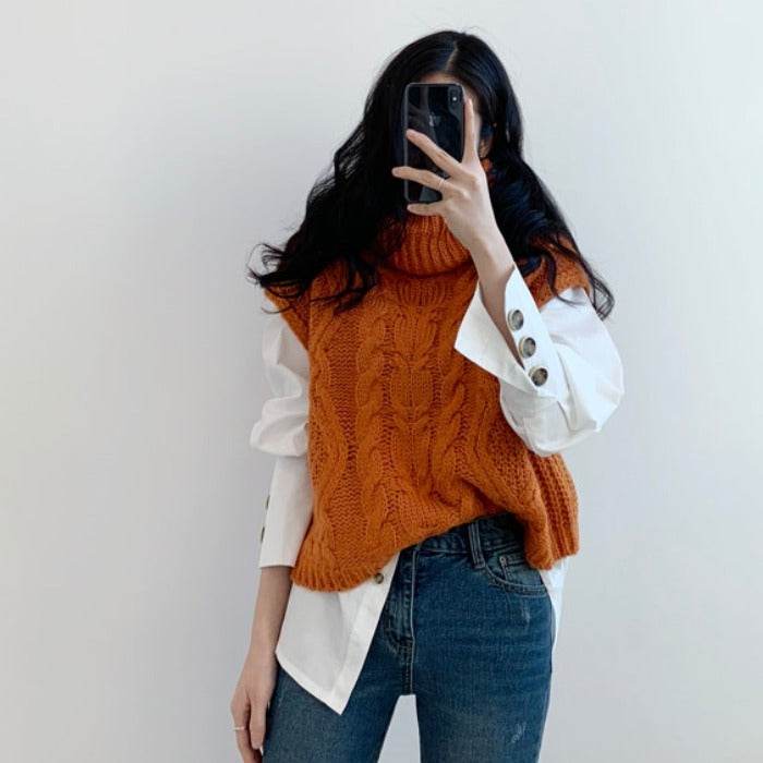 High neck linen Sweater Vest