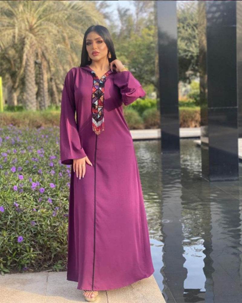 Hooded Robe Purple Dress With Diamond Tassels Women