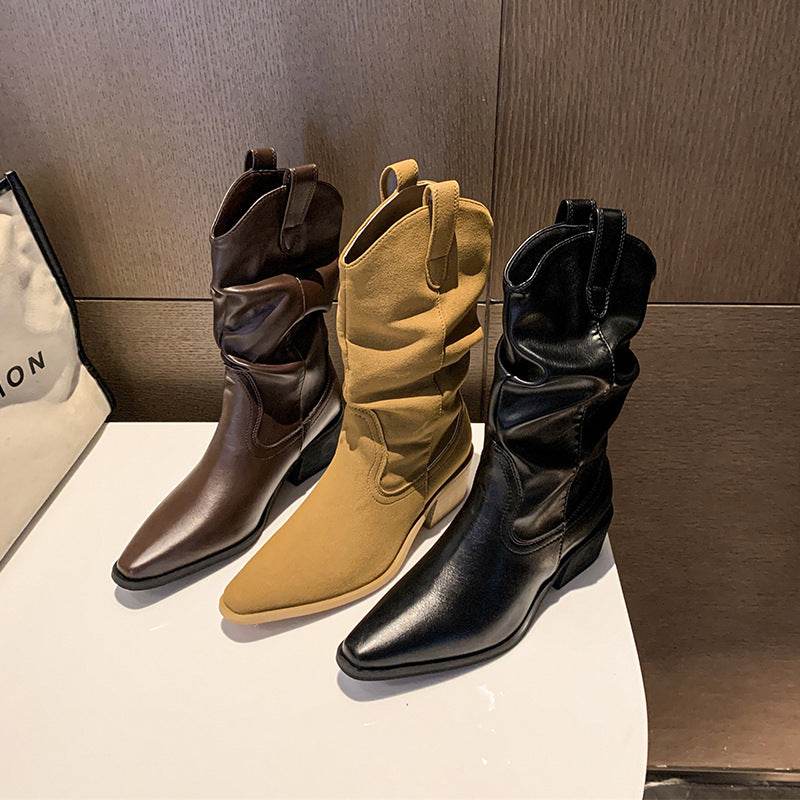 Autumn And Winter New Retro Pointed Chunky Heel Western Cowboy Boot